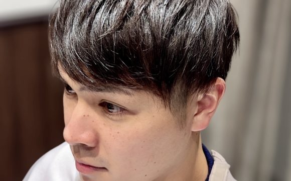 前髪はアップバンクで仕上げることで、顔まわりを明るくスッキリと見せ、爽やかさと誠実さを演出。トップは柔らかなカール感が程よいボリュームを生み出し、頭の形をきれいに見せてくれます。学生から社会人まで幅広く似合う、まさに“王道”のヘアスタイルです。