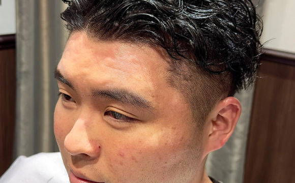 フェードのシャープさとパーマの柔らかさを掛け合わせることで、どの角度から見ても洗練された印象に。ビジネスシーンで他と差をつけたい方にぴったりの、実用性とデザイン性を両立したスタイルです。