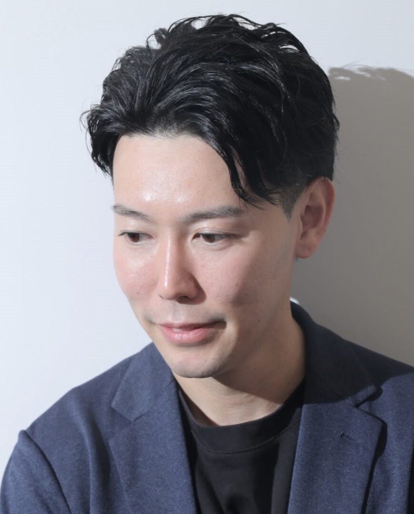 ナチュラルな色気と洗練された雰囲気を兼ね備えた「大人ニュアンスパーマツーブロックセンターパート」。程よくリッジの効いたニュアンスパーマが、センターパートの落ち着いた印象に柔らかな動きを与え、ビジネスにもプライベートにも映える万能スタイルです。
