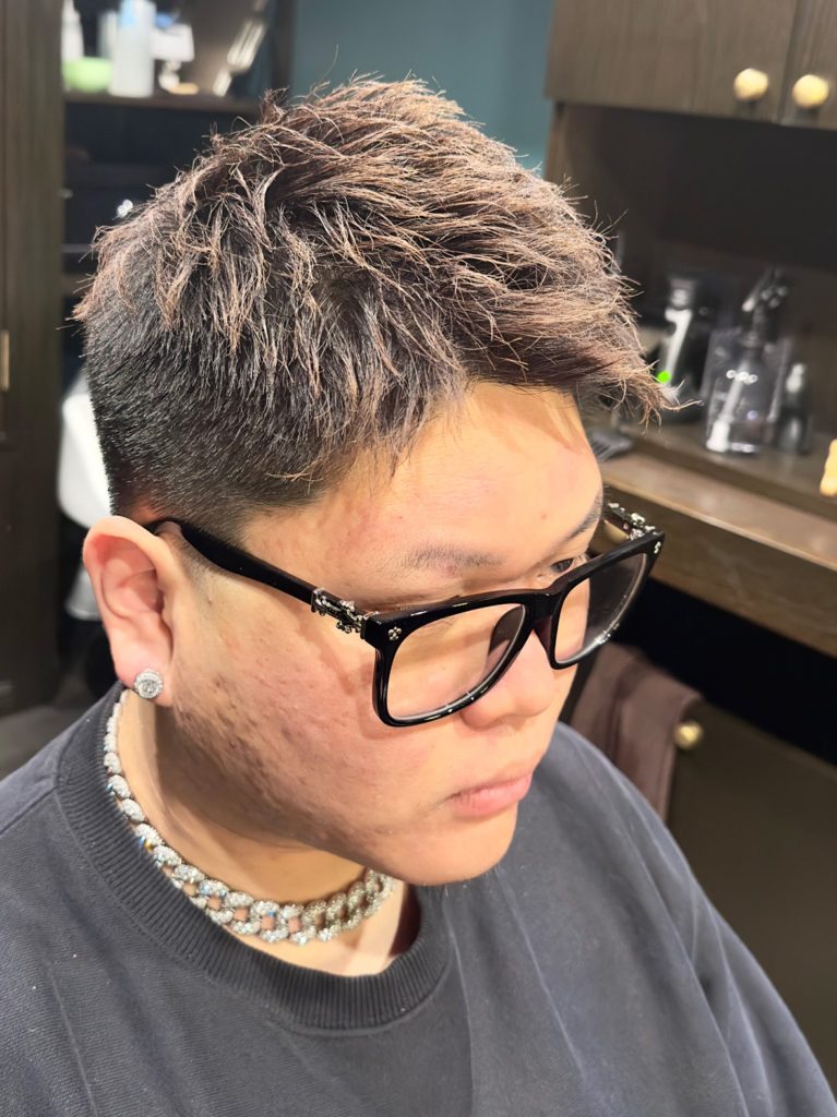 トップはやや長さを残して、しっかりと立ち上がるようにカット。動きと毛束感を意識したレイヤーが入っているので、スタイリング次第でシャープにもナチュラルにも印象を変えられます。