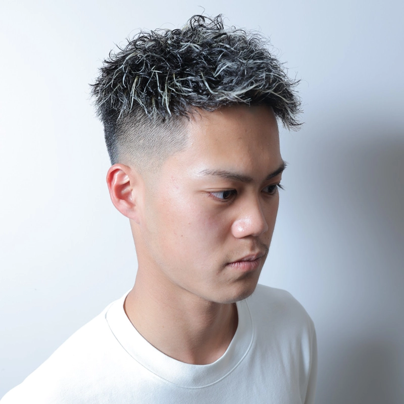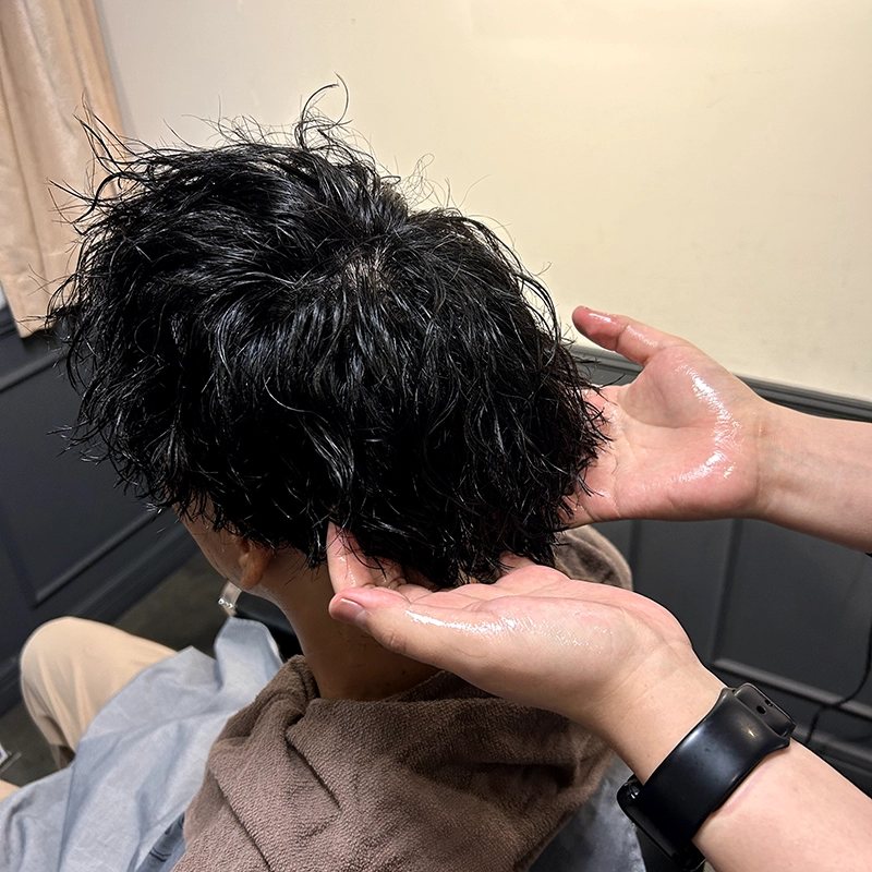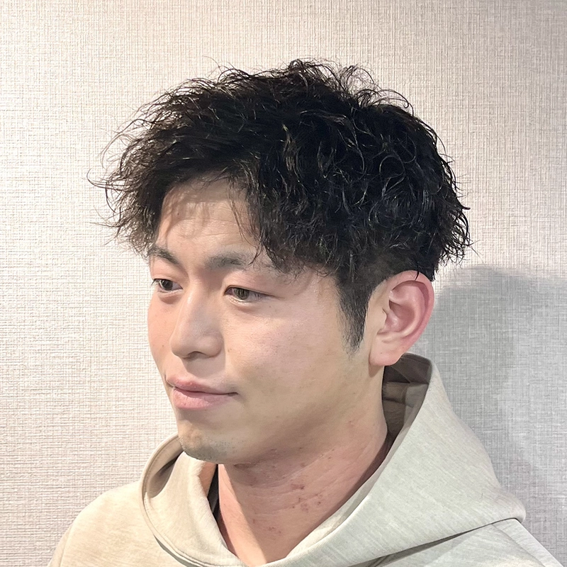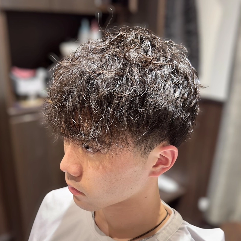 ソフトモヒカンは人によってはハードな印象を与えてしまうこともありますが、ツイストパーマのふんわりとした質感がそれをやわらげてくれます。また、仕上がりのイメージを大きく左右する髪の立ち上げもスマートに決まるようになります。