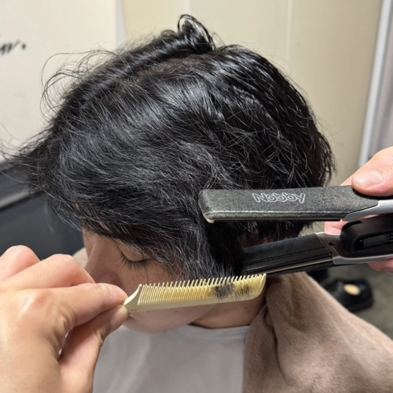 また、縮毛矯正後はトップがつぶれやすいので、根元だけ軽く立ち上げるスタイリング剤(ワックスやグリース)をおすすめします