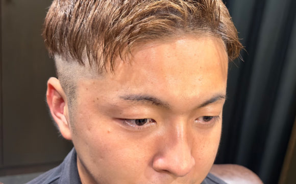 サイドと襟足はツーブロックでスッキリと仕上げ、全体のシルエットをコンパクトにまとめることで清潔感も◎。マッシュベースのシルエットにパーマのランダムな動きが加わることで、爽やかさと男らしい力強さを両立しています