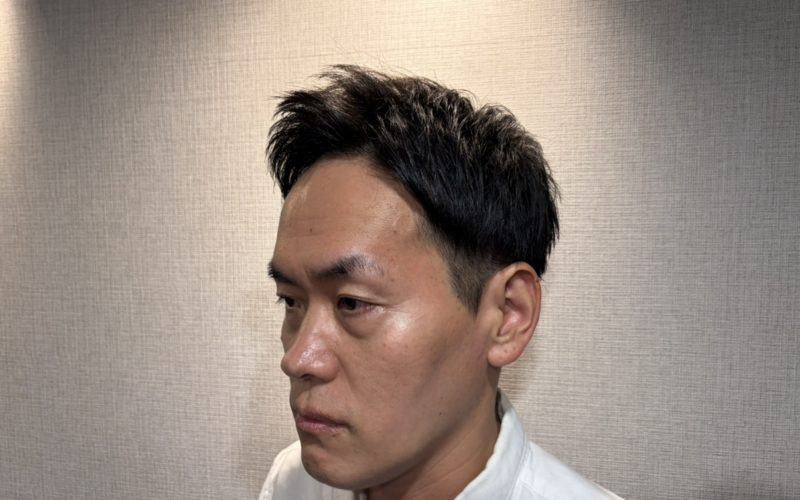 軽めの質感に仕上げているので、ワックスを少量なじませるだけで動きが出て、爽やかさと清潔感が両立。面長さんでも似合わせやすい、扱いやすいショートヘアです。