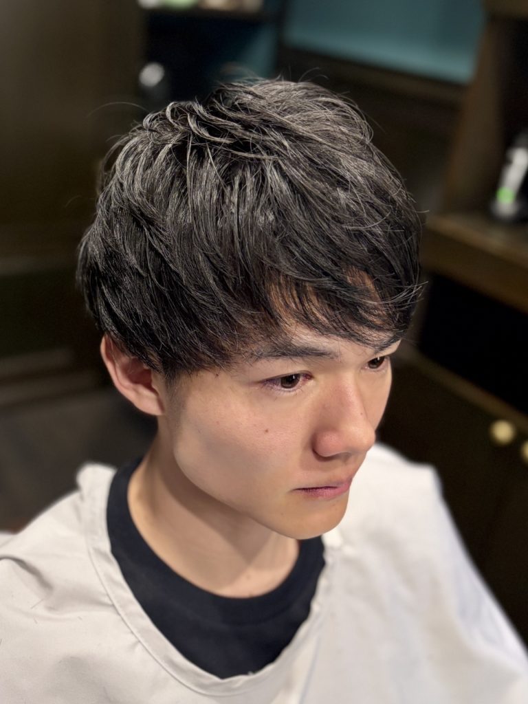 マッシュ特有の丸みを残しつつ、ツーブロックでサイドを締めることで、ビジネスシーンにも自然に馴染む大人ショートに仕上げています。