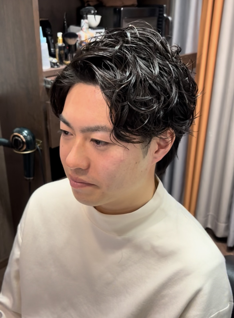 ツーブロックを組み合わせたパーマスタイル。